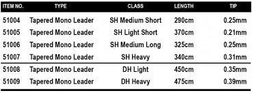 De Tapered Mono Leaders SH van Scierra zijn gemaakt uit Japans Copolymeer en de leaders zijn voorzien van een ready to fish tapering die de perfecte balans en presentatie garandeert.